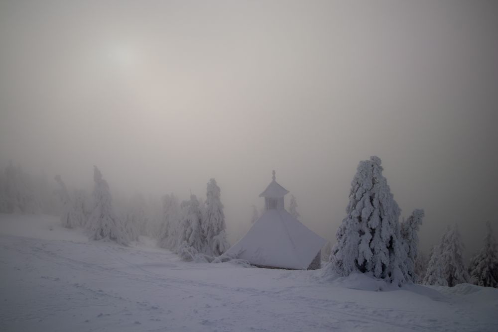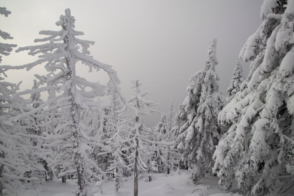 Dwa dni przed nowym rokiem wybraliśmy się w góry na Červenohorské sedlo by stamtąd ruszyć na Keprnik i Šerák. Pierwsze zaskoczenie to śnieg. Owszem spodziewałem się kilku centymetrów, ale tu było pół metra. Wystarczyło tylko zrobić niewielki krok od wydeptanej ścieżki, aby zapaść się po kolana. Dobrze, że przed wyjazdem zaopatrzyliśmy się w stuptupy, które doskonale sprawdziły się w tych warunkach. Kolejne zaskoczenie, to mgła. Już drugi raz idąc na Kpernik robiliśmy to przy słabej widoczności. W połączeniu ze śniegiem pokrywającym drzewa, dawało to dosyć męczący efekt dla oczu. Przede wszystkim zdjęcia, nie były takie jakby mogły być. Ale wyprawa i tak się udała. Przede wszystkim przyniosła nam sporo satysfakcji, no i w końcu można było się trochę poruszać po świątecznym obżarstwie.