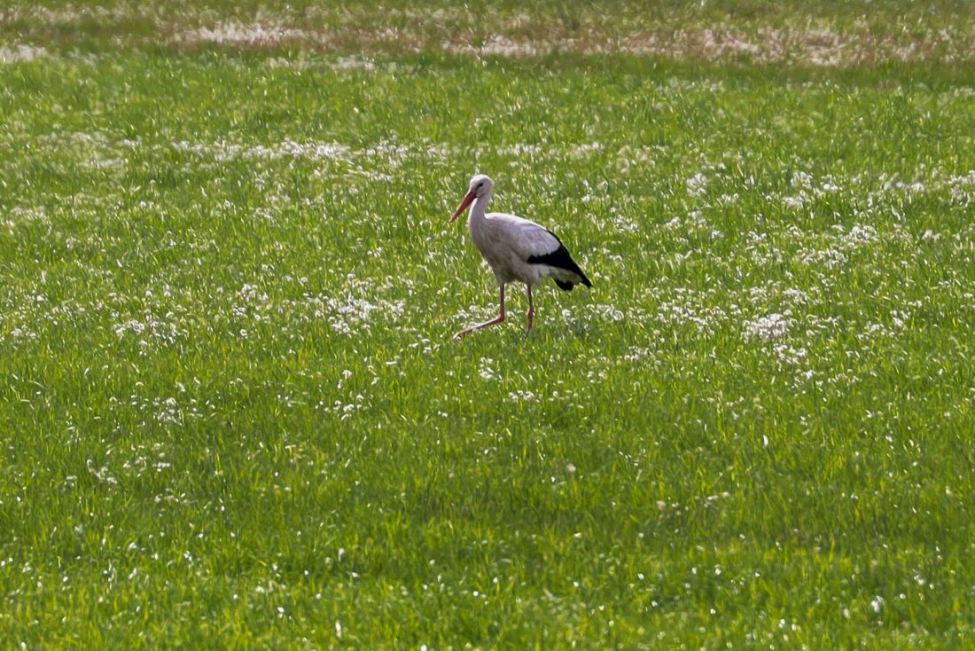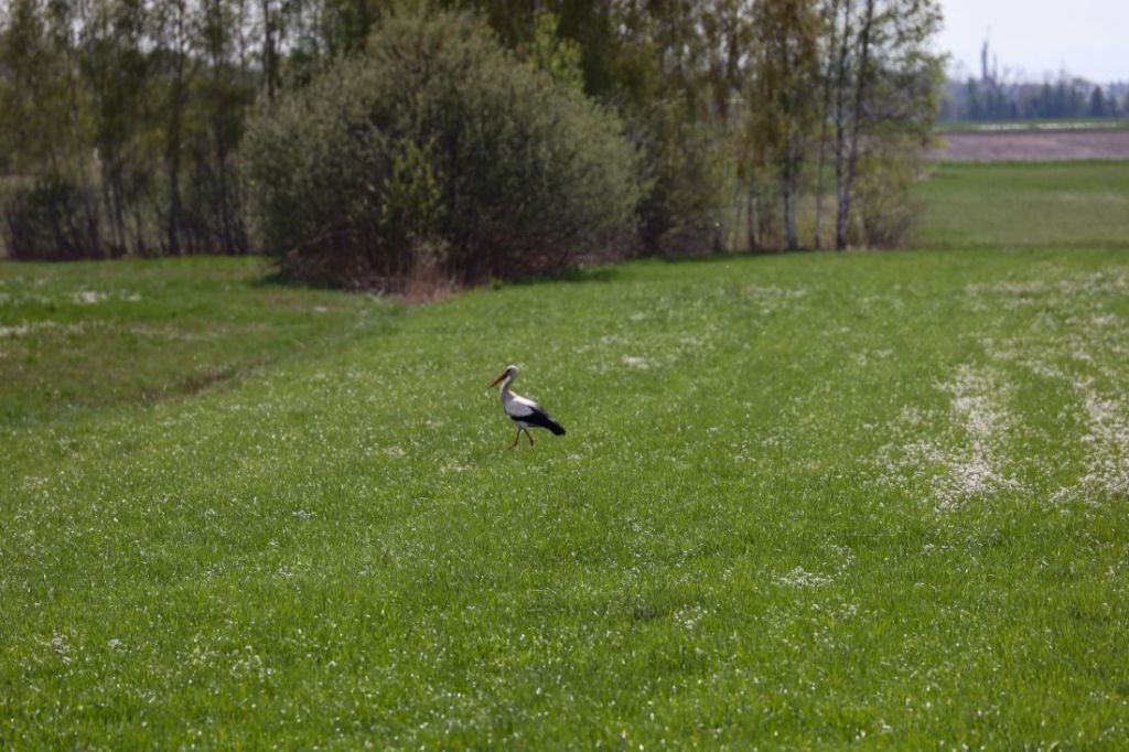A bocian Stefan stojąc kilkadziesiąt metrów dalej, spokojnie wypatrywał w trawie soczystych kąsków, myśląc sobie „Nie wiem, gdzie to się chowało, no po prostu za grosz kultury”.