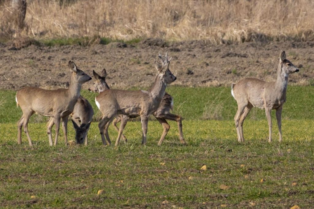 Czasami jest jedna innym razem dwie, a zdarza się, że nawet pięć. Sarny, które pojawiają się na polu w pobliżu mojego bloku, zresztą wydaje mi się, że mieszkają po sąsiedzku, w krzaczorach, którymi zarósł opuszczony sad. Wielokrotnie widziałem jak się tam chroniły, kiedy coś je spłoszyło, stamtąd też nagle się wyłaniają. Na polu się posilają, czasami się też tam ganiają lub leżą sobie w młodym zbożu. Moje sarnie sąsiadki najczęściej pojawiają się rano i pod wieczór, wdzięcznie pozując mi do zdjęć.