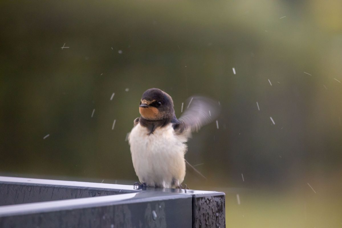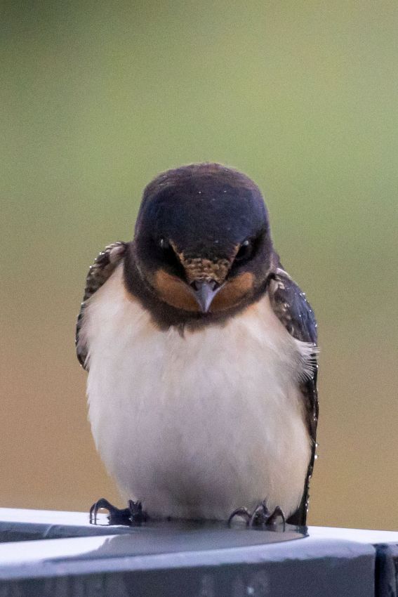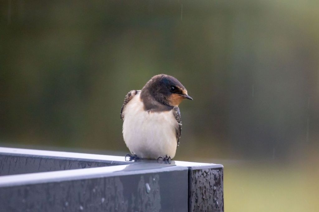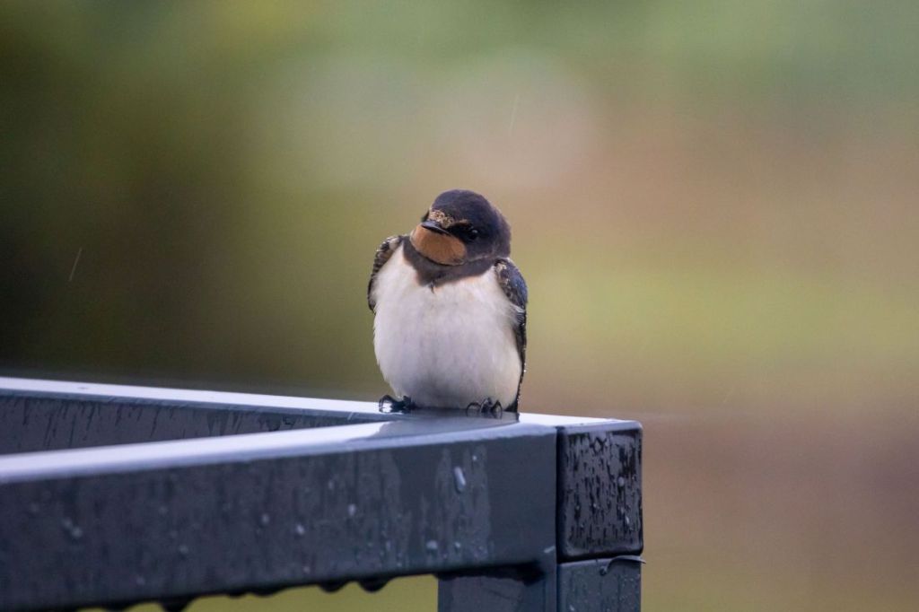 Od trzech dni jest chłodno i przeraźliwie szaro, a dziś dodatkowo słaba, przelotna mżawka, zamieniła się w intensywny deszcz. Zrobiło się przygnębiająco jesiennie. Coś okropnego! I nagle patrzę, a na poręczy balkonu siedzi sobie mała jaskółka. Postanowiła na chwilę przysiąść i schronić się przed deszczem. Jednak miejsce wybrała sobie dosyć niefortunne, niewielki daszek w żaden sposób nie osłonią od deszczu. I chociaż wyglądała jak zmokła kurka, miałem wrażenie, że niewiele ją to obchodzi. Szkoda, że lato jest takie krótkie, a teraz czeka nas kilka miesięcy szarówy i chłodu. Mam jednak nadzieję, że jesień jeszcze kilka razy nas zaskoczy bogactwem barw i całkiem znośnymi temperaturami.